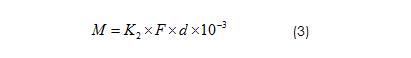 (3)式中:K2是擰緊力矩系數(shù);F表示為預(yù)緊力,F(xiàn)為式(1)計(jì)算得到的;d為螺紋公稱直徑。